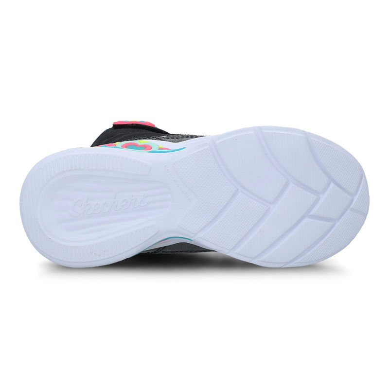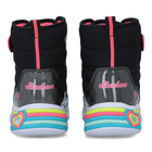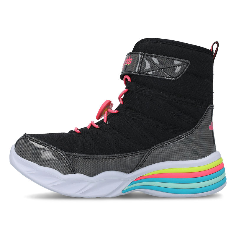 Skechers Sweeatheart Lights su dečije čizme za hladnije dane. Sklop prefinjenih boja, sa izgledom nekog slatkiša oduševiće vaše dete, sa gornjištem u crnoj boji i šarenim đonom vaši najmlađi će biti oduševljeni. Ovaj model se zatvara na čičak, ima pertle koje služe kao modni detalj i daju sigurnost stopalu. Ono što izdvaja ovaj model od ostalih je fantastičan đon u beloj boji sa prefinjenim svetlećim umetcima. Sa bočnih strana se nalazi logo brenda. Skechers čizme su veoma udobne i atraktivne, idealne su za aktivan dan vaših klinaca.