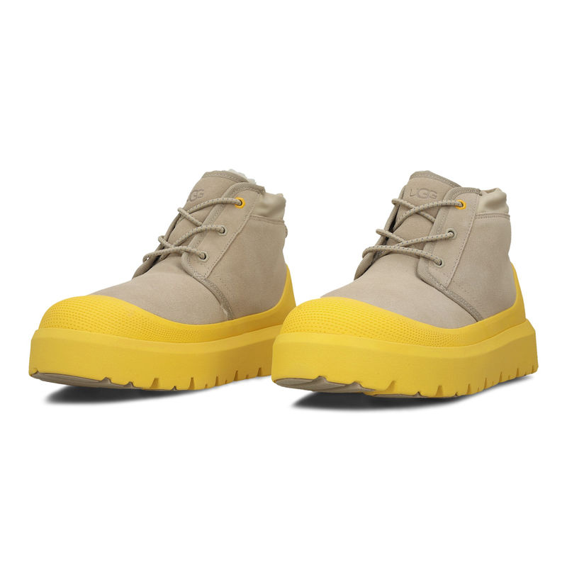 Izrađene od ovčje kože i gume, UGG Neumel Weather Hybrid su čizme u krem i žutoj boji. Dizajnirane sa hibridnim stilom, pružaju toplinu i udobnost, idealne za muškarce koji traže moderan izgled za zimske dane.