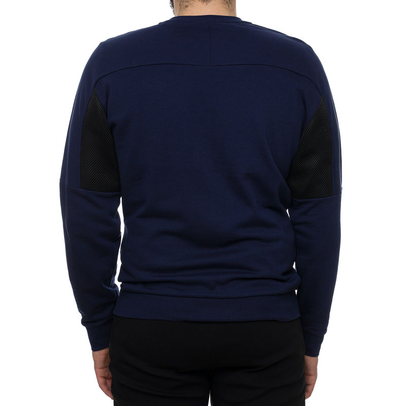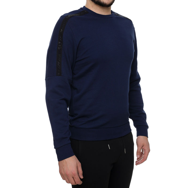 Emporio Armani Sweatshirt je muški duks sa fotografije. Ovaj teget duks ima okrugli izrez oko vrata i blago je strukiran. Od ramena od lakta se proteže crna trakica sa potpisom brenda. Crni umetci se prostiru sa zadnje strane, na jednom delu rukava. Sa prednje strane, ispod grudi, nalazi se beli znak brenda EA7. Nosite svakog dana moderni muški duks.Emporio Armani je podbrend brenda Armani, namenjen mladim ljudima između 20 i 30 godina i svima koji se tako osećaju. Mlade odrasle osobe sada mogu da se obuku u luksuznu odeću koja prati savremeni dizajn. Brend je nastao osamdesetih godina prošlog veka i od tada kreira vrhunske komade muške i ženske odeće.