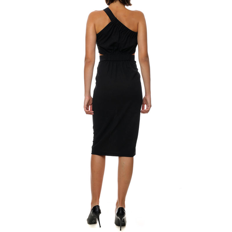 Karl Lagerfeld Cut Out Jersey Dress je ženska haljina sa fotografije. Ova crna uska haljina je dugačka do ispod kolena i vrlo je elegantna. Ovo je haljina bez rukava, sa pojasem preko ramena do leđa. Na struku, sa bočnih strana, nalaze se diskretni prorezi. Nosite svakog dana crnu usku haljinu uz cipele sa štiklom. Ne postoji tačan podatak o tome kada je Karl Lagerfeld rođen. Njegova ekstravagantnost je išla do tih granica da se Karl pravio da slavi svoj 70. rođendan, kada je zapravio navršio 75. Ovakav slobodan duh se oseća u svim modelima Karl Lagerfeld obuće, odeće i aksesoara. Radi se o pronicljivoj viziji balansa klasičnog i modernog stila. Karlov lični opis su bile crne naočare, bela kosa i rukavice. Celu ponudu Karl Lagerfeld brenda pogledajte u N Fashion internet prodavnici.