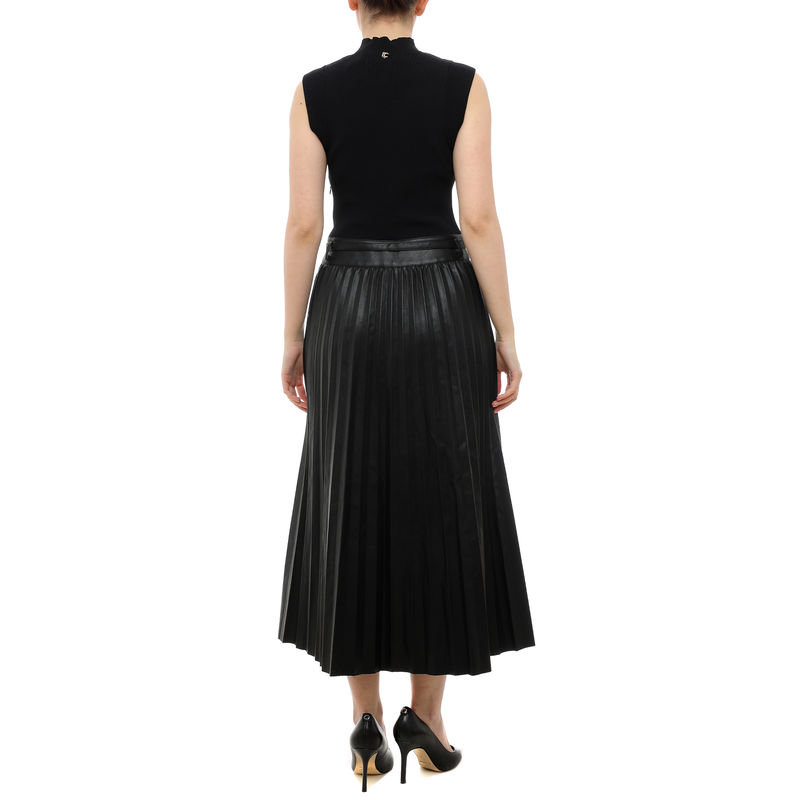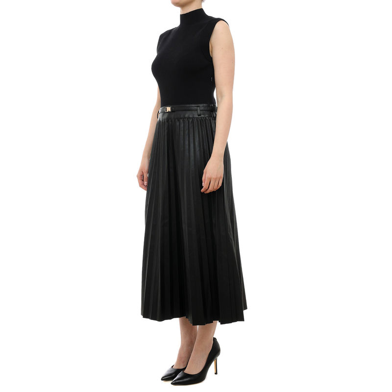 Ženska haljina Lola Midi dress with leather effect pleated skirt