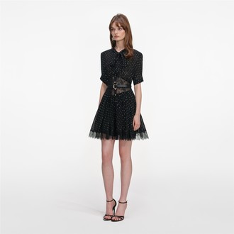 • Ženska haljina Self Portrait Black And Gold Chiffon Mini Dress