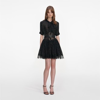 Ženska haljina Self Portrait Black And Gold Chiffon Mini Dress