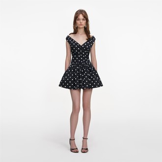 Ženska haljina Self Portrait Black Polka Dot Cotton Mini Dress