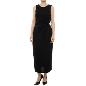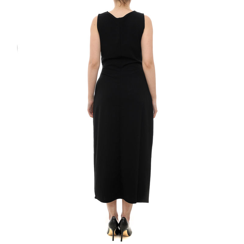 Ova 7/8 crna haljina pruža savršenu siluetu i vrhunsku svestranost za svaku priliku. Izrađena je od prozračnih materijala koji prate liniju tela bez sputavanja pokreta, čineći je idealnom za celodnevne aktivnosti. Sveden dizajn nudi bezbroj mogućnosti za stilizovanje uz različitu obuću i aksesoare.
