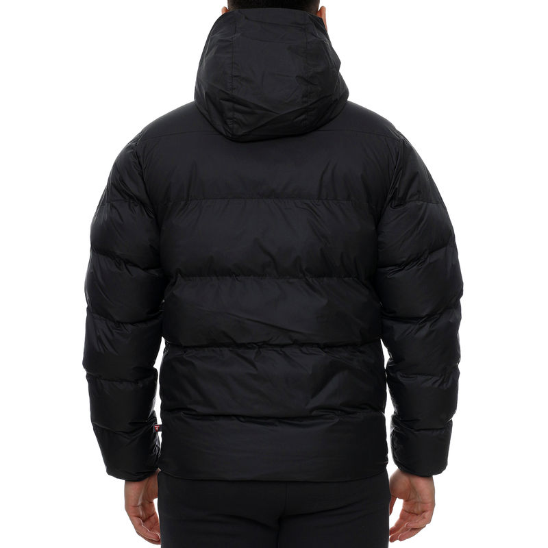 Nike M NK SF WR PL-FLD HD JKT je muška jakna sa fotografije. Ova crna jakna je pufnasta, ima horizontalne ureze i greje telo tokom nošenja. Oko vrata se nalazi okovratnik i kapuljača sa podesivim gumicama. Sa prednje strane se nalaze dva džepa, a čije strane su podeljene cibzarom. Na grudima je beli znak brenda Nike. Ova popularna jakna se može nositi svakog dana tokom hladnih dana.Nike predstavlja američku multinacionalnu korporaciju koja se bavi proizvodnjom, dizajniranjem i razvojem obuće, odeće, sportske opreme i pružanjem usluga. Nike brend teži da doprinosi inspiraciji i inovaciji svakog atlete u svetu. Na taj način se postižu maksimalni ljudski potencijali. Sa sedištem u Beavertonu, Oregonu, Nike korporacija obuhvata Nike, Converse, Hurley i Jordan brend.