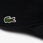 Lacoste kačket sa fotografije je sasvim crne boje. Pristaje svakom obliku glave i ima podesivi kaiš sa zadnje strane. Prednji deo je čvrst i blago zakrivljen. Na samom kačketu se nalazi i logo brenda. Nosite svakog dana moderni muški Lacoste kačket. Lacoste brend nastao je davne 1933. godine, kada je popularni francuski teniser René Lacoste osnovao kompaniju. Profesionalci u ovom poslu kreiraju odeću i obuću za sve ljude koji neguju eleganciju. U proteklih nekoliko decenija, Lacoste je ojačao temelje svog brenda koristeći širok dijapazon proizvoda, od sunčanih naočara, preko aksesoara, do obuće, parfema i ručnih satova.