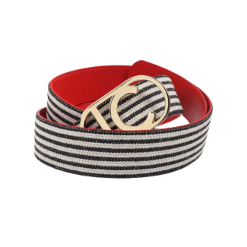 Ženski kaiš Lola Reversible coral and striped canvas belt with oval lc logo buckle