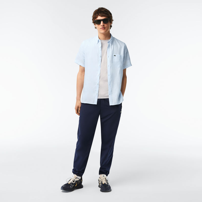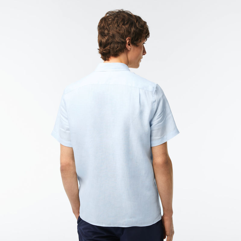 Lacoste muška košulja sa fotografije je svetloplava košulja kratkih rukava. Napravljena je samo od lana. Udobna je, lako se stilizuje, ima dugmiće celom dužinom i kragnu oko vrata. Na grudima se nalazi pocket džep i na njemu diskretni logo brenda Lacoste. Ostanite moderni uz Lacoste muške košulje.Lacoste brend nastao je davne 1933. godine, kada je popularni francuski teniser René Lacoste osnovao kompaniju. Profesionalci u ovom poslu kreiraju odeću i obuću za sve ljude koji neguju eleganciju. U proteklih nekoliko decenija, Lacoste je ojačao temelje svog brenda koristeći širok dijapazon proizvoda, od sunčanih naočara, preko aksesoara, do obuće, parfema i ručnih satova.