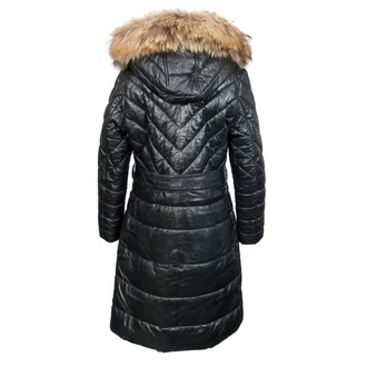 Ova duga ženska jakna je klasičan zimski komad koji savršeno kombinuje eleganciju i funkcionalnost za hladne dane.