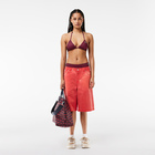 Lacoste ženski kupaći gornji deo sa fotografije ima trouglaste korpe. Ima vezice sa gornje strane i vezice sa zadnje strane. Kupaći je napravljen od crvenog materijala sa plavim šarama koje formiraju pečate znaka brenda Lacoste. Tu je i originalni znak brenda. Nosite svakog letnjeg dana ovaj gornji deo ženskog kupaćeg kostima na plaži ili bazenu, kao i tokom sunčanja.Lacoste brend nastao je davne 1933. godine, kada je popularni francuski teniser René Lacoste osnovao kompaniju. Profesionalci u ovom poslu kreiraju odeću i obuću za sve ljude koji neguju eleganciju. U proteklih nekoliko decenija, Lacoste je ojačao temelje svog brenda koristeći širok dijapazon proizvoda, od sunčanih naočara, preko aksesoara, do obuće, parfema i ručnih satova.