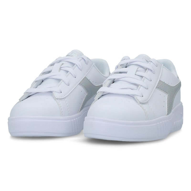 Dečije patike Diadora Game Step PS su u osnovi bele boje. Imaju sive umetke sa bočne i zadnje strane koji prate logo i ime brenda Diadora. Pored toga, logo se nalazi i na jezičku. Imaju izdignuti rebrasti đon, bele pertle i čvrsto gornjište. Deo su kolekcije jesen/zima 2020. i spremne su da isprate svaki korak najmlađih. Lako se kombinuju uz sve odevne kombinacije i mogu se nositi tokom celog dana. Diadora predstavlja italijanski brend koji se bavi proizvodnjom sportske opreme i modnih artikala. Kompanija je osnovana 1948. godine u cilju proizvodnje čizama za planinarenje. Sama reč ""Dia-dora"" znači deljenje poklona i počasti. Kompanija u skladu sa imenom i dan danas deli tehnološke inovacije, svoj entuzijazam i prevazilazi svoje granice u proizvodnji svojih artikala.