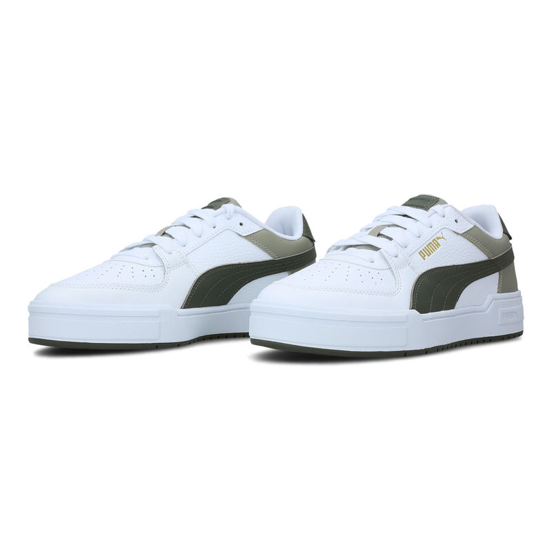 Puma CA Pro su muške patike. Ovaj model je u osnovi bele boje sa tamnim detaljima. Gornjište je izrađeno od materijala koji nudi odličnu potporu i stabilnost. Gumeni đon nešto malo naglašen i zahvaljujući SoftFoam pruža celodnevnu udobnost pri svakom koraku. Originalan izgled čini logo brenda Puma koji se nalazi na jezičku, bočnoj I zadnjoj strani. Puma model je savršen za svaku sezonu i lako se uklapa sa ostalim odevnim predmetima. Ovaj model je takođe dostupan i u drugoj boji.