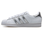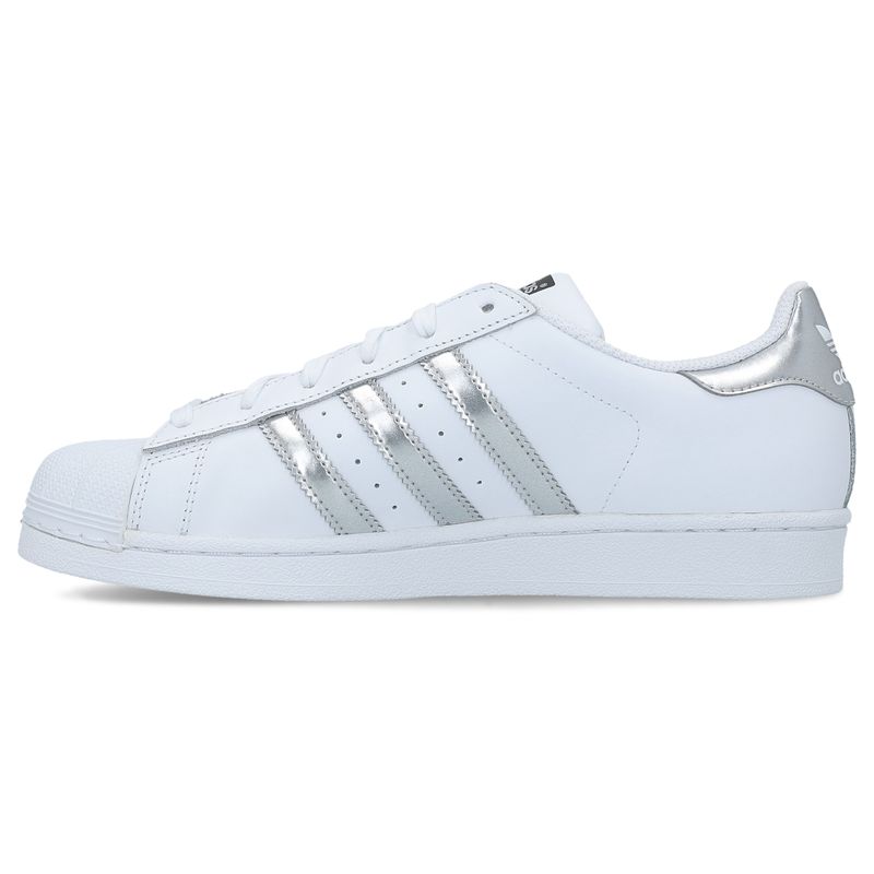 Adidas Superstar model ženskih patika izrađen je od kombinacije prirodne i sintetičke kože. Patike su bele boje, dok bočne i zadnje delove modela krase ženstveni srebrni detalji. Na bočnom delu modela i na jezičku se nalazi Adidas logo. Sportski izgled ovih ženskih patika lako će se uklopiti u različite odevne kombinacije i lako će se koristiti za svakodnevne aktivnosti ili sport. Sveden ali moderan izgled ovog modela patika ispratiće korak svake savremene žene. Šarena istorija kompanije Adidas započeta je davne 1924 godine. Njihova je misija da budu najbolji sportski brend u svetu. Sve što rade ima korene u sportu. Ovo je upravo ono za šta se etiketa brenda Adidas “The Badge of Sport” zalaže. To je oštar kraj njihovog koplja, zasnovan na inovativnim proizvodima, na najboljim svetskim sportistima, timovima i događajima. Međutim, Adidas ne samo da dizajnira proizvode za sve vrste sporta, Adidas dizajnira proizvode za sportiste. Sportisti uvek streme svojim najboljim dostignućima. Sportisti nalaze inspiraciju u sportu, bez obzira na to šta rade. Adidas im pomaže da dostignu svoje vrhunske performanse tako što ih čini bržima, jačima, pametnijima i strateški nastrojenima.