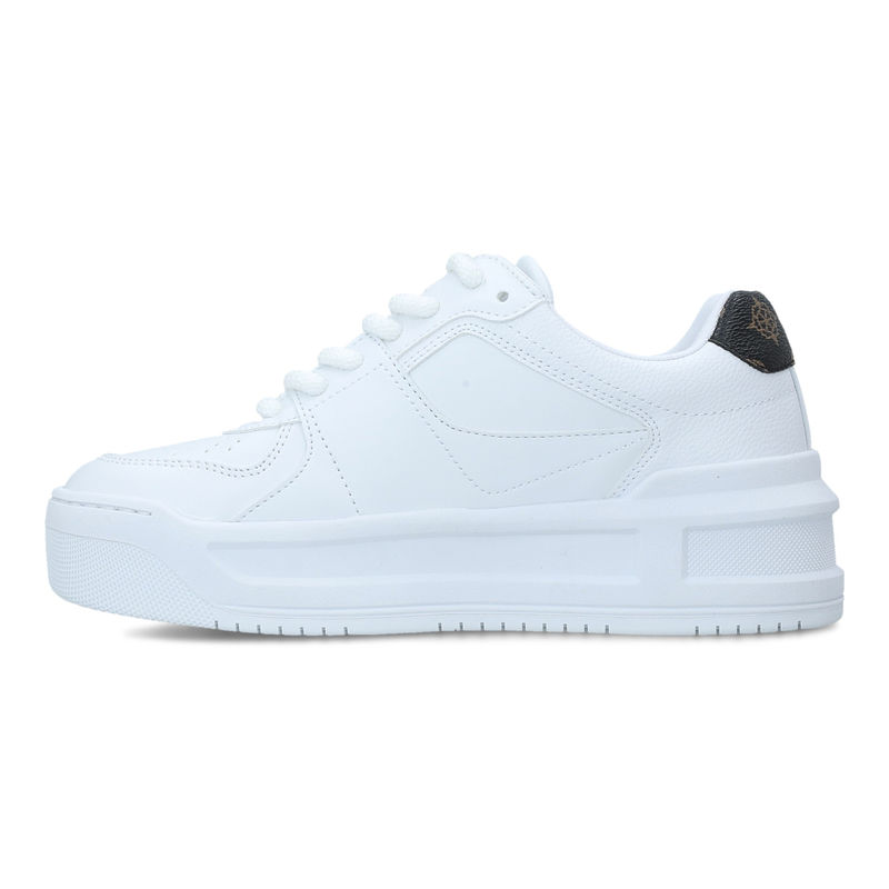 Guess Lemmer Sneaker Cupsole Low su ženske patike sa fotografije. Ove plitke bele patike iz nove kolekcije imaju u osnovi glatko gornjište, ali su napravljene od više umetaka različitih oblika. Gornjište je rupičasto, pertle su bele boje, a sa zadnje strane se nalazi crni znak sa braon pečatima brenda Guess. Đon je masivan i ravan, ali sa zarezima. Nosite svakog dana Guess ženske patike koje dodaju visini.GUESS odeća je bila jedini proizvod GUESS brenda osamdesetih godina, kada je brend osnovan. Zahvatanjem većeg tržišta GUESS je obuću uveo u svoj asortiman. Danas, pored odeće i obuće, u okviru asortimana GUESS brenda možete pronaći i torbe, kaiševe, novčanike i rančeve. Ovaj brend nudi moderne kolekcije proizvoda dizajnirane za trendsetere.