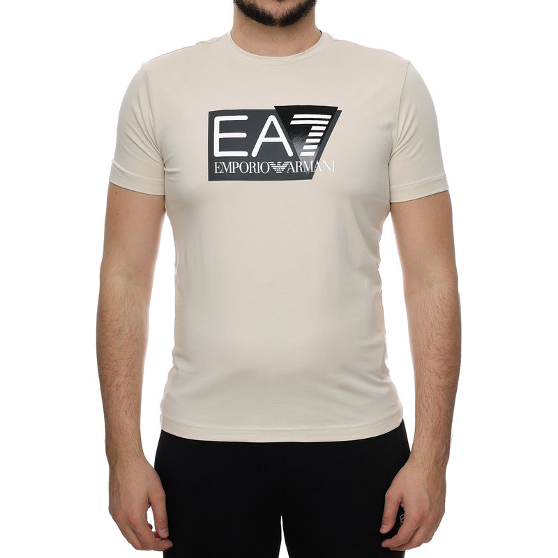 Emporio Armani T-Shirt je muška majica sa fotografije. Ova bež muška majica ima okrugli izrez oko vrata, kratke rukave, i strukirana je. Na sredini grudi je veliki, crni znak brenda EA7. Majica je idealna kao osnova izgleda na kojoj možete graditi ostatak, ili kao kompletan izgled. Nosite je svakog dana uz sportsku odeću, šorceve ili farmerke.Emporio Armani je podbrend brenda Armani, namenjen mladim ljudima između 20 i 30 godina i svima koji se tako osećaju. Mlade odrasle osobe sada mogu da se obuku u luksuznu odeću koja prati savremeni dizajn. Brend je nastao osamdesetih godina prošlog veka i od tada kreira vrhunske komade muške i ženske odeće.