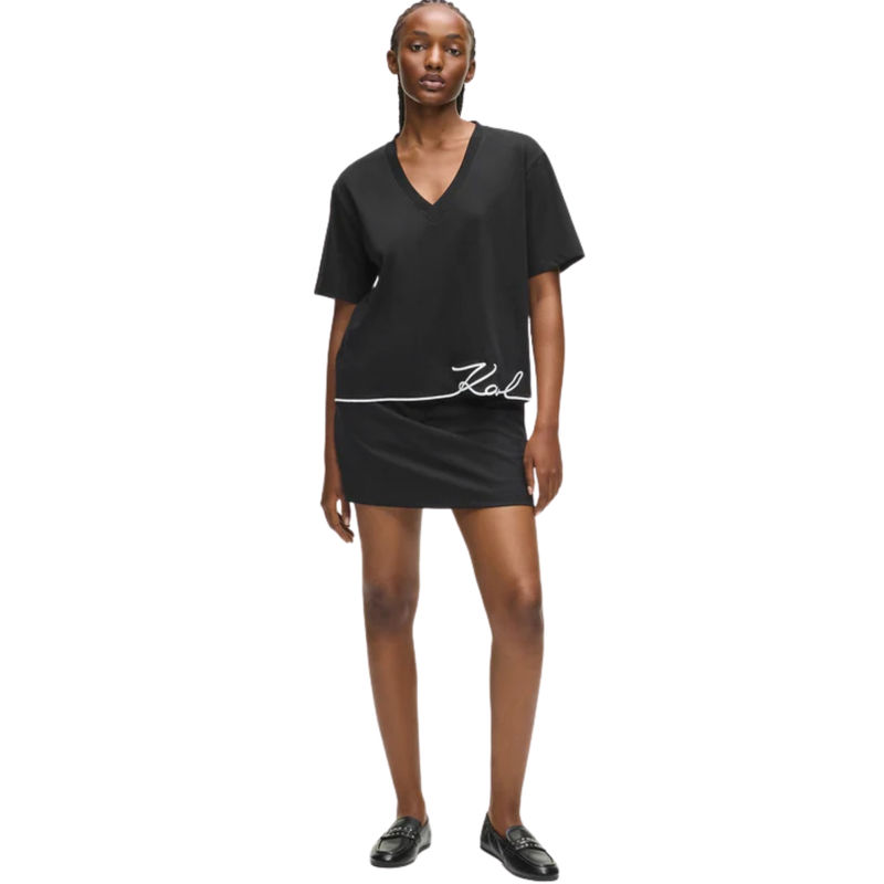 • Ženska majica Karl Lagerfeld signature hem v-neck t-shirt