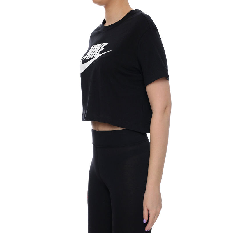 Nike Womens Sportswear Tee Essentials CRP ICN FTR je ženska majica kratkih rukava. Ovaj model je u crnoj boji dok ga prepoznatljivim čini ime brenda i logo Nike koji se nalaze na prednjoj strani. Ženska majica je komfornog i kraćeg kroja, izrađena je od pamuka i veoma je prijatna i moderna. Nike Womens Sportswear Tee Essentials možete nositi svakodnevno uz sportske i kežual kombinacije.