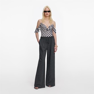 • Ženske pantalone Self Portrait Grey Rhinestone Pinstripe Trousers