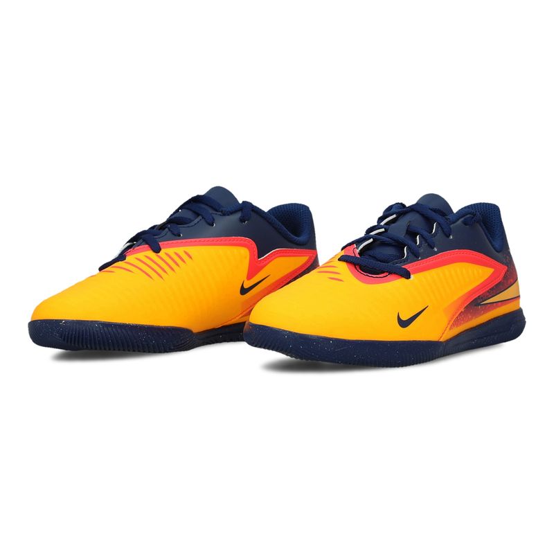 Izrađene od sintetičkog materijala u narandžasto-crnoj boji, ove patike imaju nisku siluetu i gumeni đon za indoor aktivnosti. Idealne su za mlade fudbalere.