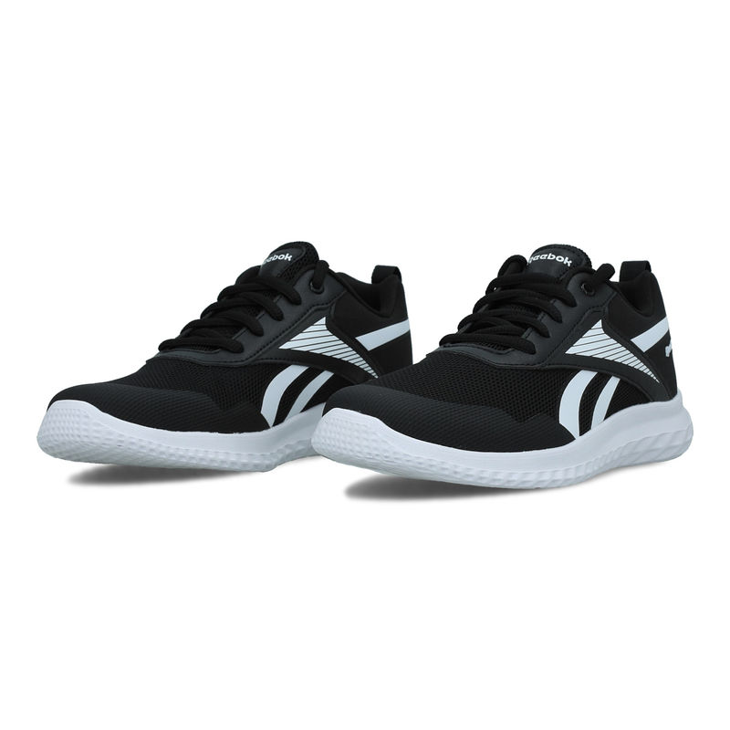Izrađene od mrežastih materijala i gume, Reebok Rush Runner 5 su patike u crnoj i beloj boji. Dizajnirane za trčanje, pružaju lakoću i udobnost, idealne za decu koja traže performanse. Klasična kombinacija boja čini ih raznovrsnim za svakodnevnu upotrebu.