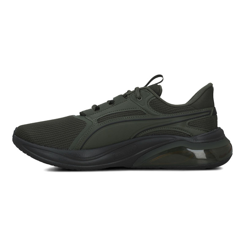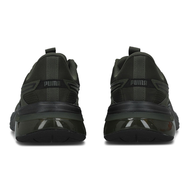 Izrađene od mrežastog materijala, Puma Cell Thrill Dash su patike u tamno maslinastoj i crnoj boji. Dizajnirane s maslinastim gornjim delom i crnim đonom, pružaju udobnost i performanse, idealne za muškarce koji traže sportski izgled za trčanje.