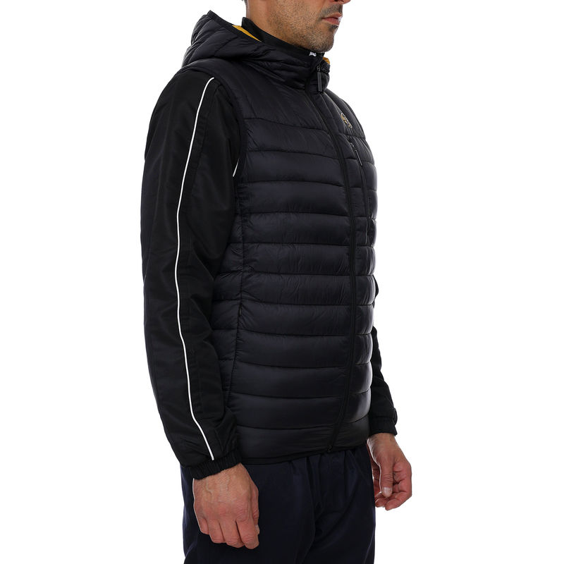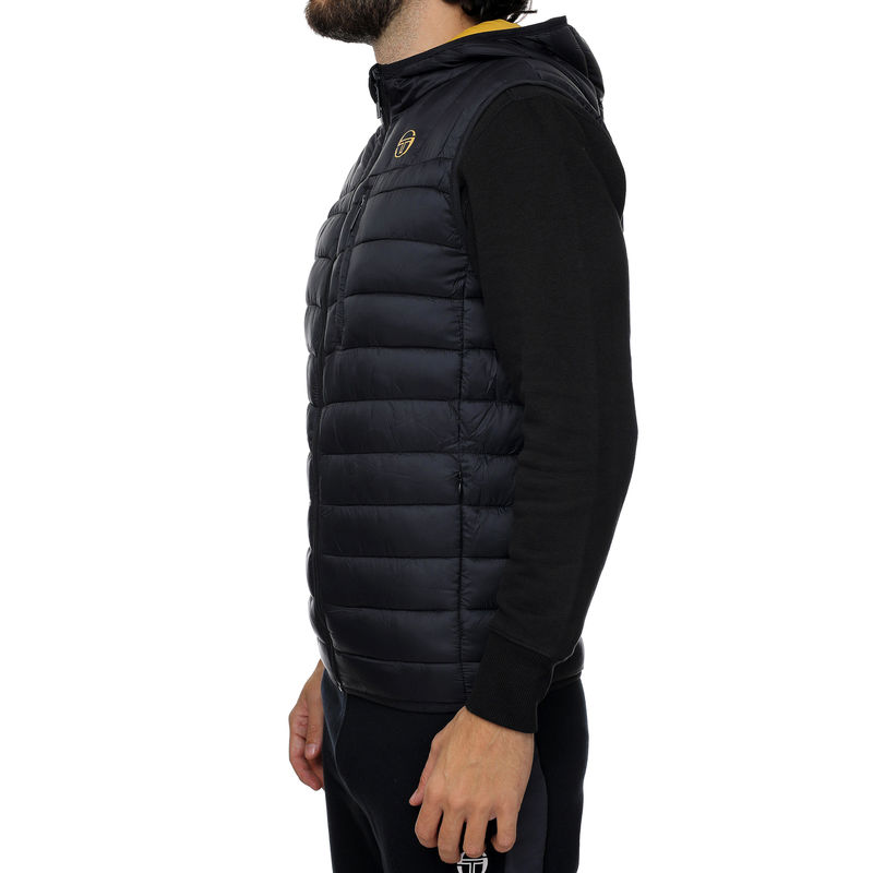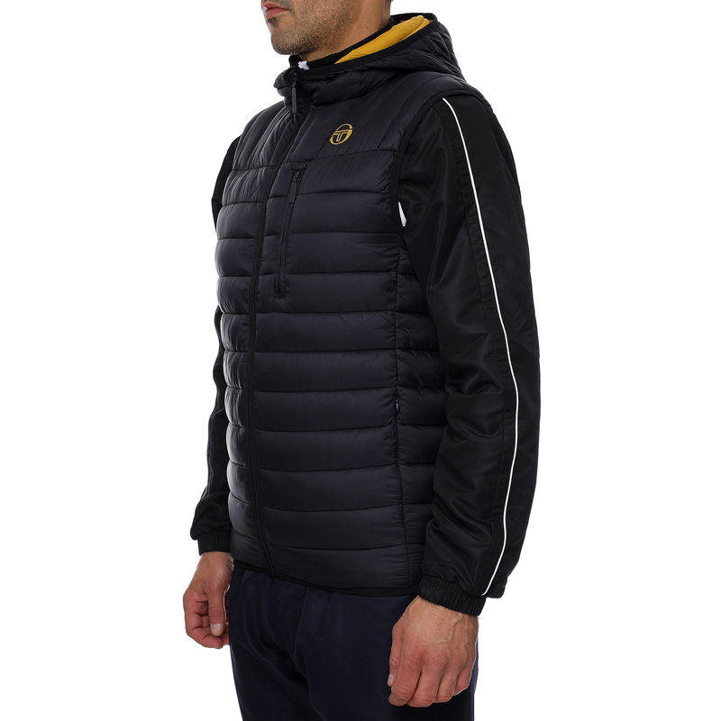 Sergio Taccini Nessen Jacket SL muški prsluk je savršen za ovu jesen. Sasvim je crne boje, ima dva džepa sa bočne strane i jedan na prednjim grudima sa zatvaranjem na cibzar. Muški prsluk se otkopčava pomoću cibzara, a atraktivna kapuljača služi radi zaštite od vetra. Rebrast dizajn Sergio Taccini prsluka pruža vam moderan izgled, a logo brenda sa prednje strane upotpunjuje model. Vrlo je moderan i može se nositi svakog dana.