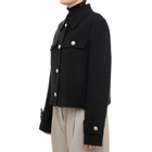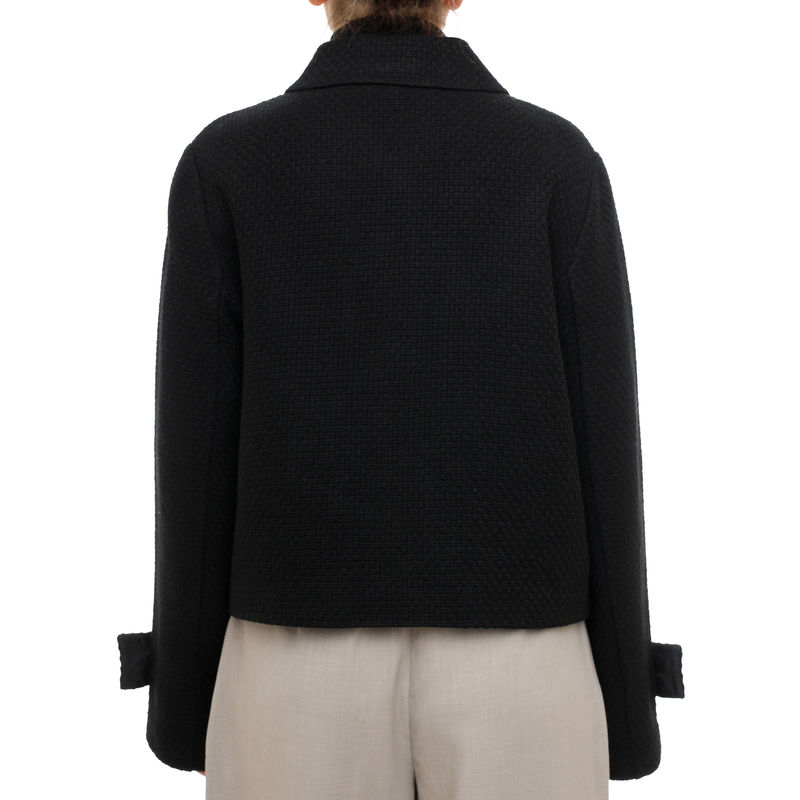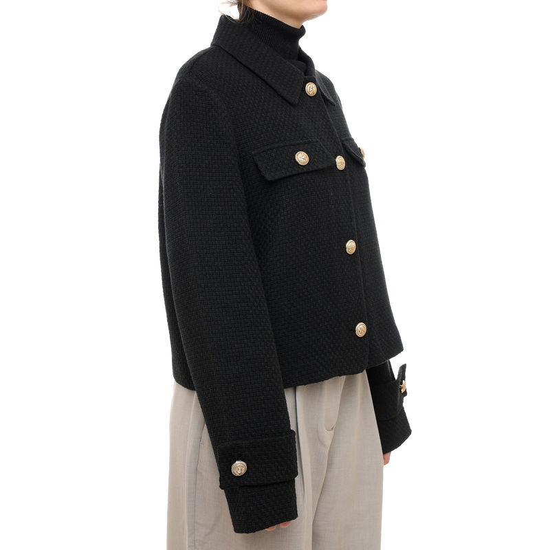 Potpuno crna kratka sako-jakna nudi vrhunsku svestranost i oštre linije koje ističu vaš modni autoritet. Izrađena je od visokokvalitetnih tkanina koje zadržavaju formu, čineći je idealnom za poslovne sastanke ili večernje izlaske preko haljine. Ovaj model je savršen spoj funkcionalnosti i trendi dizajna.