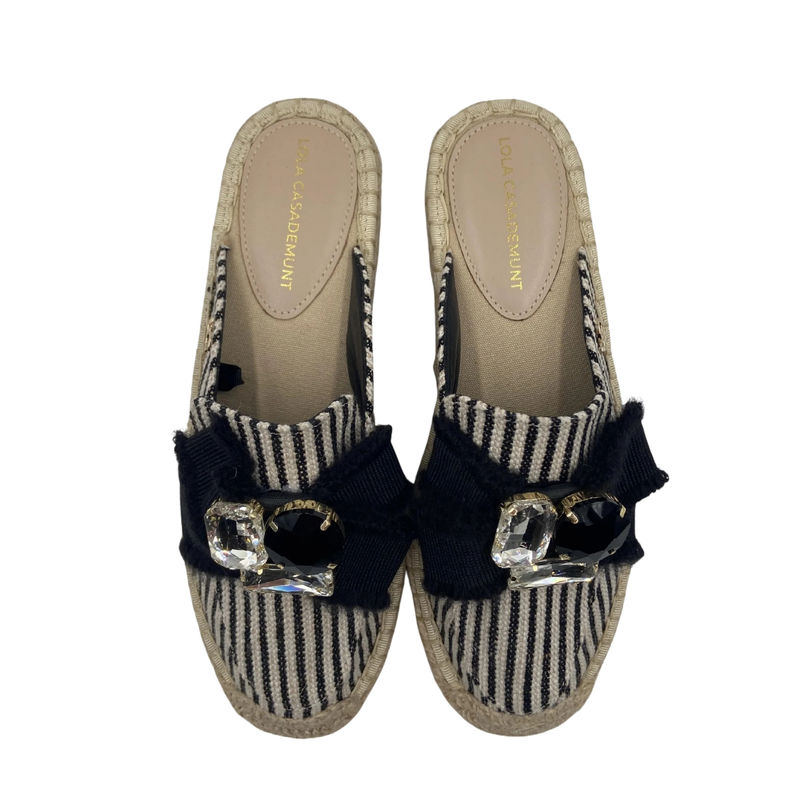 Ženske špagerice Lola Flat striped canvas sandals with raffia-effect sole and bow detail