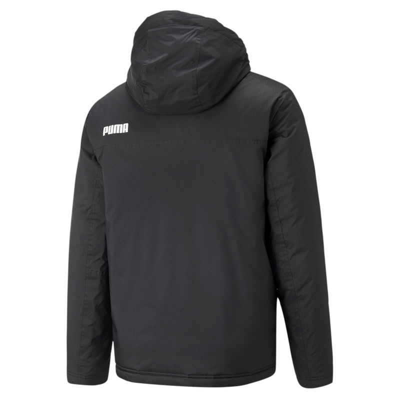 Puma Padded Hooded Parka je muška otmena zimska jakna. Ova jakna je dostupna u crnoj boji, kraćeg je kroja I veoma lepo se uklapa u sportsko/elegantan stil. Klasičan dizajn jakne upotpunjava ime i logo brenda na licu modela i logo Puma na leđima. Muška jakna se zatvara na cibzari to će vam pružiti osećaj sigurnosti. Ova moderna jakna ima kapuljaču koja će vas zaštititi od vetra i dva velika džepa sa zatvaranjem na driker za odlaganje sitnica. Shodno da je ova zimska jakna izrađena od poliestera, pogodna je za snežne ali i kišovite dane. Elegantni izgled jakne lako će se uklopiti u mnoge odevne kombinacije savremenog muškarca.
