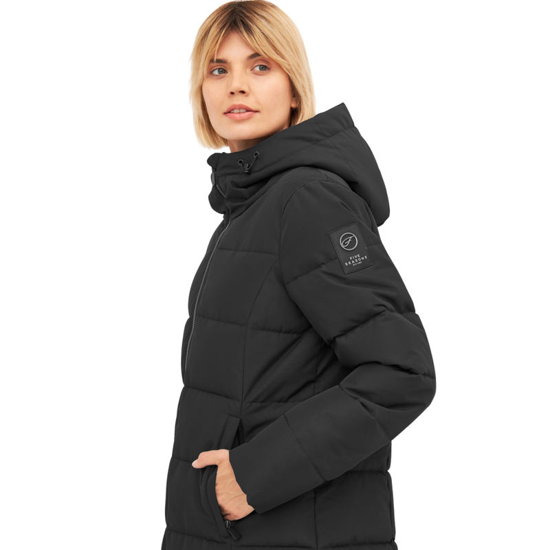 Five Seasons Effie JKT W je dugačka ženska zimska jakna. Ova jakna je dostupna u crnoj boji, dužeg je kroja i veoma lepo se uklapa u sportsko/elegantan stil. Rebrast dizajn jakne upotpunjava logo brenda Five Seasons na rukavu, a duboka kragna sa učkurima na podešavanje vam pruža zaštitu od hladnoće. Ženska jakna se zatvara na cibzar, ima kapuljaču koja će vas zaštititi od vetra i dva bočna džepa za odlaganje sitnica koja se zatvaraju na cibzar. Shodno da je ova zimska jakna pogodna za snežne i hladne dane, nosićete je sa uživanjem i bićete ugrejani kada je najhladnije. Moderan izgled jakne lako će se uklopiti u mnoge odevne kombinacije savremene žene.